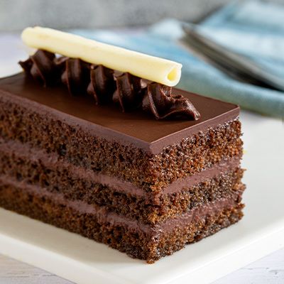 Layers of dark chocolate ganache and moist chocolate sponge cake. Allergens - Eggs, Wheat, Dairy, Soy